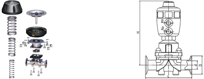 衛(wèi)生級(jí)氣動(dòng)隔膜閥鋼質(zhì)部件:不銹鋼304、不銹鋼316L。