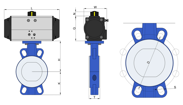 閥體一般由鑄鋼或不銹鋼制成。閥板通過閥桿與氣動執(zhí)行機構(gòu)連接,在閥體內(nèi)旋轉(zhuǎn)實現(xiàn)開關(guān)和調(diào)節(jié)。密封由閥座密封和軸封組成,保證良好的密封性。