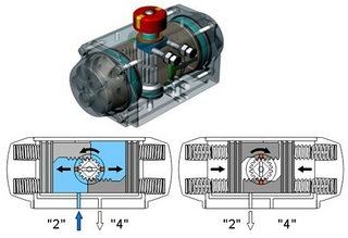 雙作用就是你給氣,氣動執(zhí)行器開始轉(zhuǎn)動,打開閥門; 當要關(guān)閉閥門時需要要另外一邊給起才能關(guān)閉!